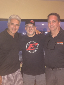 (Left to Right) J&B Employee Mark David, Eldora Owner/NASCAR Driver Tony Stewart, Wicked Cushion Managing Partner, Matthew Henninger.